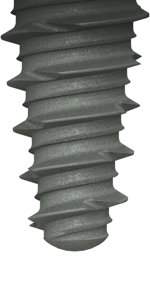 İmplantın makro ölçekli formu, Blossom kesici oluklar ve agresif payanda dişleri ile stabilite için tasarlanmıştır.